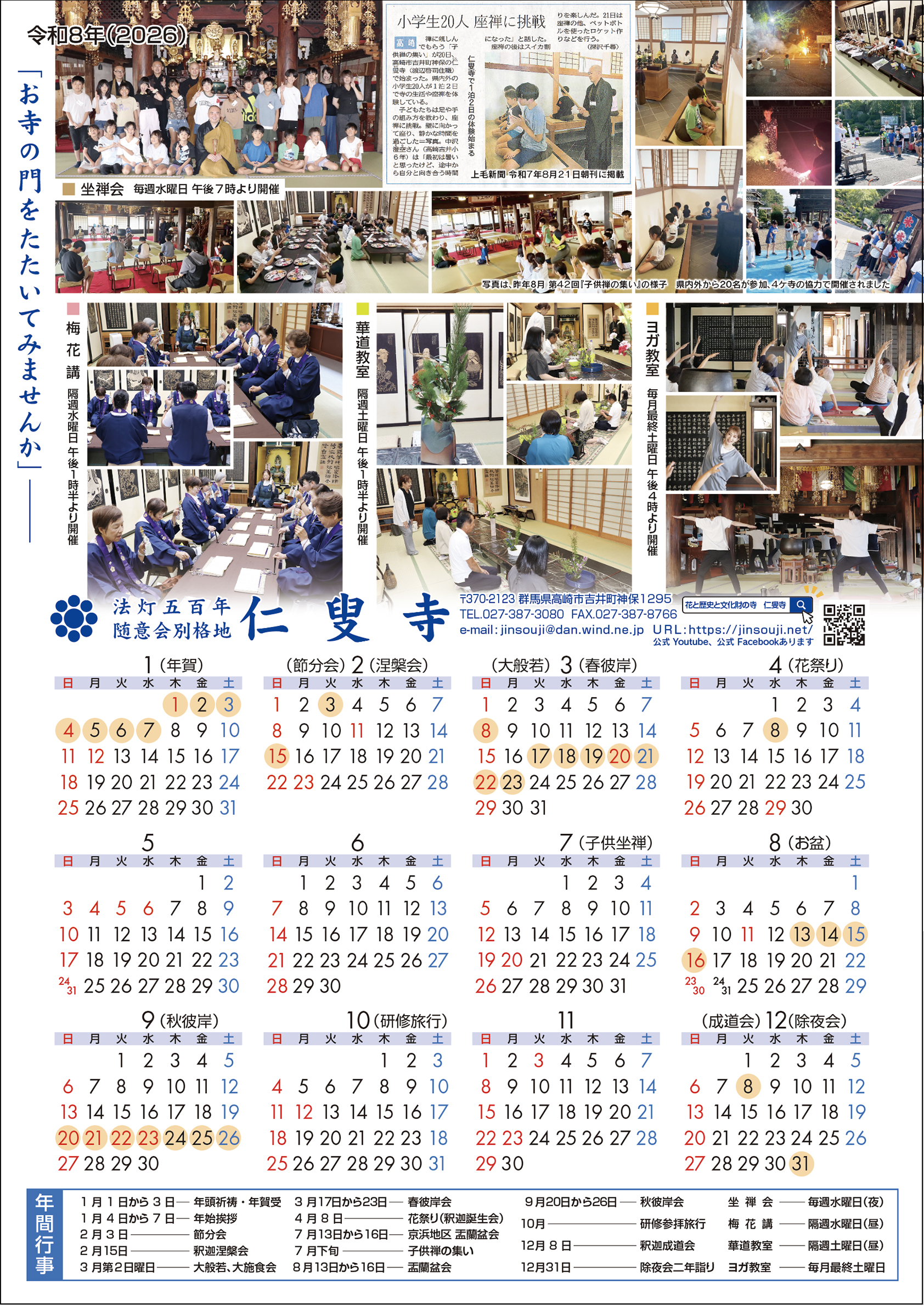 | ■仁叟寺ヨガ 令和8年 | ・ヨガのご案内 |